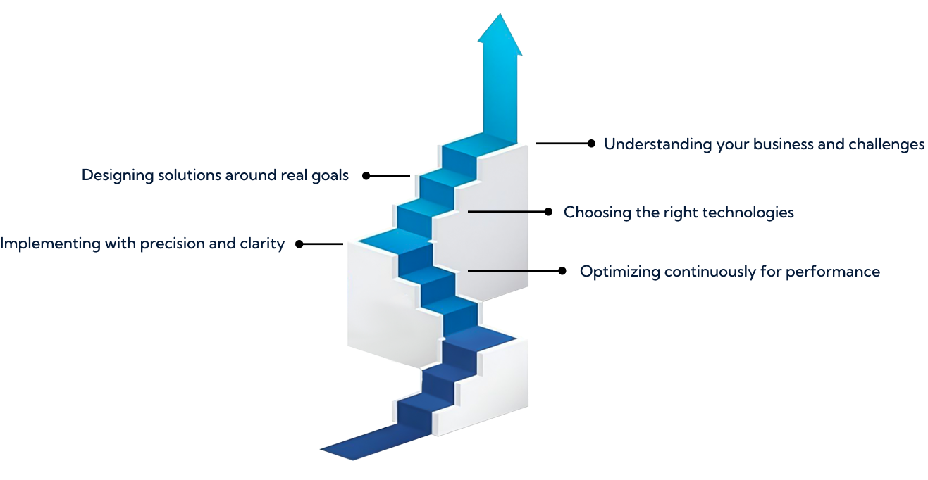 We believe technology should solve problems — not create them. Our approach is rooted in understanding business objectives before applying tools or code.